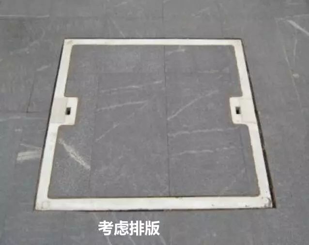 ▲裝面層上的各類井蓋在處理時(shí)應(yīng)提前與鋪裝排版模式進(jìn)行核對(duì),確保不破壞整體鋪裝效果