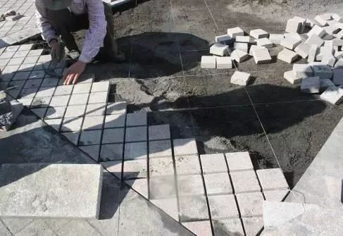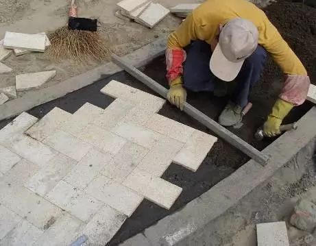 園林道路石材鋪裝石雕欄桿施工全過程,準(zhǔn)備工作→基層處理→彈線→試排→刷水泥漿及鋪砂漿結(jié)合層→鋪貼石材→灌縫、擦縫→成品保護(hù)