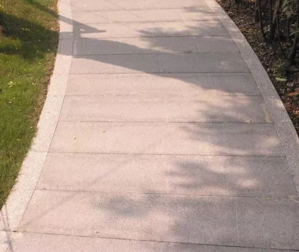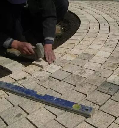 ▲平面鋪裝涉及到曲線段時(shí)為了保證拼縫方向與行走方向一致,鋪裝石材必需使用弧形板過渡。