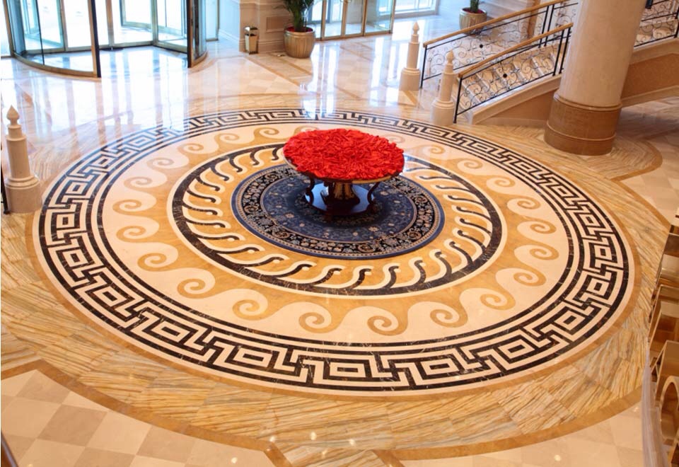 大理石拼花石材拼花,其實可以看做是馬賽克工藝的一種發(fā)展和延伸,是馬賽克工藝和新的加工工藝和技術(shù)相結(jié)合的而衍生出的新的石材產(chǎn)品。像早期的石材拼花,主要是石材板材類產(chǎn)品的拼組,這可以看成是放大版的石材馬賽克,而后期由于水刀技術(shù)的應(yīng)用和加工精度的提升,石材拼花把馬賽克的鑲嵌工藝發(fā)揮到了極至,形成了自己獨特的風(fēng)格。不過在國外石材拼花還是屬于石材馬賽克的范疇的。