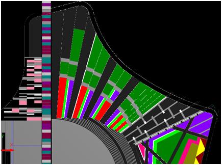 3、繪圖時,利用導(dǎo)入的CAD線條元素并結(jié)合Glodon軟件自帶的延伸、鏡像、偏移和修剪等工具,各種面形構(gòu)件之間用虛墻分隔。