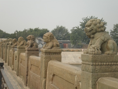 盧溝橋亦作蘆溝橋,在北京市西南約15公里豐臺區(qū)永定河上,是北京市現(xiàn)存最古老的石造聯(lián)拱橋。永定河舊稱盧溝河,橋亦以盧溝命名。始建于金大定二十九年(1189年),明正統(tǒng)九年(1444年)重修。清康熙時(shí)毀于洪水,康熙三十七年(1698年)重建。盧溝橋全長267米,寬 7.6米,最寬處可達(dá)9.5米。有橋墩十座,共11孔,整個(gè)橋體都是石結(jié)構(gòu),關(guān)鍵部位均有銀錠鐵榫連接,為華北最長的古代石橋。