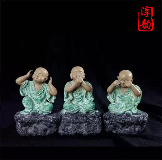 這組表情豐富、形態(tài)各異又頗有些禪意的小沙彌由鐵丸石精心雕琢而成。