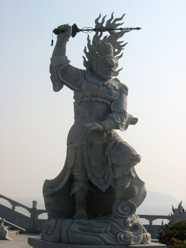 禮佛廣場上四大天王塑成了中國古代的武將形象,這是古印度佛教傳入中國后,佛教文化和中華文化相圓融的結(jié)果。 “這四大天王塑像的原形,他們的出身并不是很高貴,而是屬于那種“放下屠刀,立地成佛”的人物。四大天王原形的由來,源于古典小說“封神演義”中“魔家四將”。在周武王率兵起義,反對暴虐的無道君主——商紂王的正義戰(zhàn)爭中,這魔家四兄弟曾經(jīng)率兵于佳夢關(guān)一線阻擋周武王東進的軍隊。經(jīng)過數(shù)番爭斗,結(jié)果是被周武王的軍隊盡數(shù)殲滅,魔里海、魔里青、魔里壽、魔里紅這四兄弟也亡命于周軍之手。戰(zhàn)爭結(jié)束后,這四個助桀為虐的“魔頭”,經(jīng)姜子牙開封神榜時,就被任命為“四大天王”。