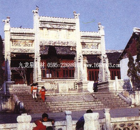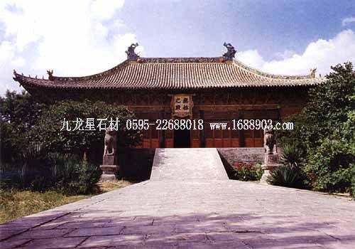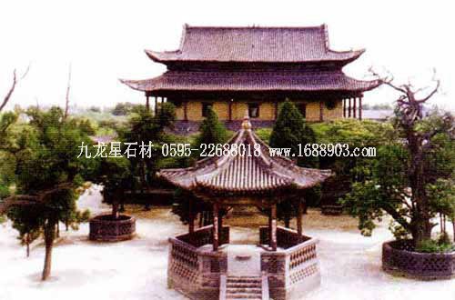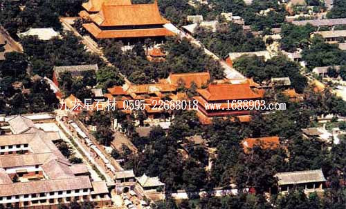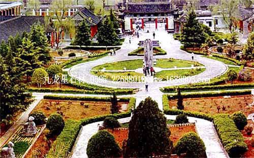 孔廟位于山東省曲阜市南門內(nèi),是歷代祭祀孔子的廟宇,建筑規(guī)模宏大,雄偉壯麗。其平面呈長方形,總面積327.5畝,南北長1120米。整個孔廟的建筑群以中軸線貫穿,左右對稱,布局嚴謹,共有九進院落。全廟共有五殿、一祠、一閣、一壇、兩堂、十七碑亭、五十三門坊,共計有殿廡四百六十六間??讖R內(nèi)最為著名的建筑有:欞星門、二門、奎文閣、杏壇、大成殿、寢殿、圣跡堂、詩禮堂等。杏壇,傳為孔子講學(xué)處,壇旁一株古檜,稱“先師手植檜”;大成殿為孔廟的主殿,殿內(nèi)正中奉祀孔子塑像,兩旁為4配和12哲的塑像;東西廡殿原供孔子弟子及儒家歷代先賢;故宅井后的“魯壁”為秦始皇焚書坑儒時,孔子第九代孫孔鮒收藏《尚書》、《禮記》、《論語》、《孝經(jīng)》等書的夾墻??讖R與孔府、孔林并稱“三孔”,是中國現(xiàn)存最大的四大古建筑群之一。