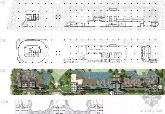 流動的幾何體給人一種高聳入云之感,塔樓每隔三層客房擁有懸挑的空中花園,上面種滿了熱帶植物,它已成為城市綠地的一部分,與鄰近公園融為一體。酒店擁有自我遮陽功能,懸挑而出的空中花園和相鄰的三座酒店客房大樓都能起到遮陽的作用,客房樓層立面采用低輻射玻璃。