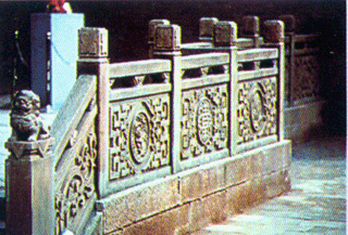 莊園大量的石雕,還是砂石作品。其石材多取于附近山中,質(zhì)地有白、綠、紅、青多種,主要用于橋、廳、臺(tái)、廊的護(hù)欄和柱體,半亭花墻、影壁和牌坊,刀法較青石作品粗獷、雄渾,畫面疏朗典雅、疏密得當(dāng)、虛實(shí)和諧、古樸堅(jiān)實(shí),顯得特別有氣魄。杏壇、街心牌坊、祠堂獻(xiàn)廳圍欄、養(yǎng)和堂階欄、半亭、三星影壁和莊園西門魚躍龍門巨幅石額,就是砂石雕刻的代表作。