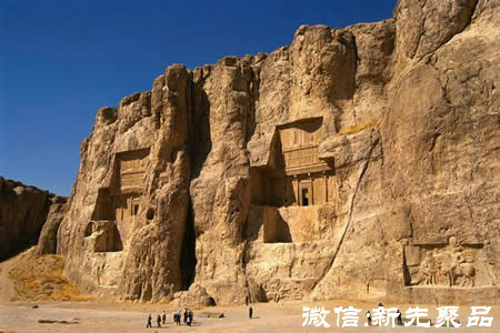 Naqsh-e Rostam被考古學(xué)家認(rèn)為是波斯波利斯的一座墓地,阿契美尼德,帕提亞和薩珊皇族被安葬在此處。其位于伊朗法爾斯省的波斯波利斯西北3,4公里處,這里擁有一些皇室陪葬品,其中包括:埃蘭王朝(公元前2世紀(jì)),阿契美尼德王朝(公元前550-330年)以及薩珊王朝(公園226-651年)。自從前阿契美尼德時期唯一幸存的紀(jì)念浮雕也差點在巴赫拉姆二世的審判現(xiàn)場被毀滅。Naqsh-e Rostam 是由白色和灰色的石灰石建造而成,并沒有使用任何的砂漿。據(jù)說,波斯人首先使用色彩來裝飾石雕的。Naqsh-e Rostam石雕的特點就是使用了色彩裝飾。這里好多景點的銘文和雕刻都覆蓋著青金石色。有證據(jù)表明,大流士雕像有著青金石藍(lán)的胡子,黑色的頭發(fā)和眉毛,紅色的眼睛和嘴唇,甚至鞋子也是有顏色的,盡管隨著時間的流逝,那些色彩逐漸褪去。