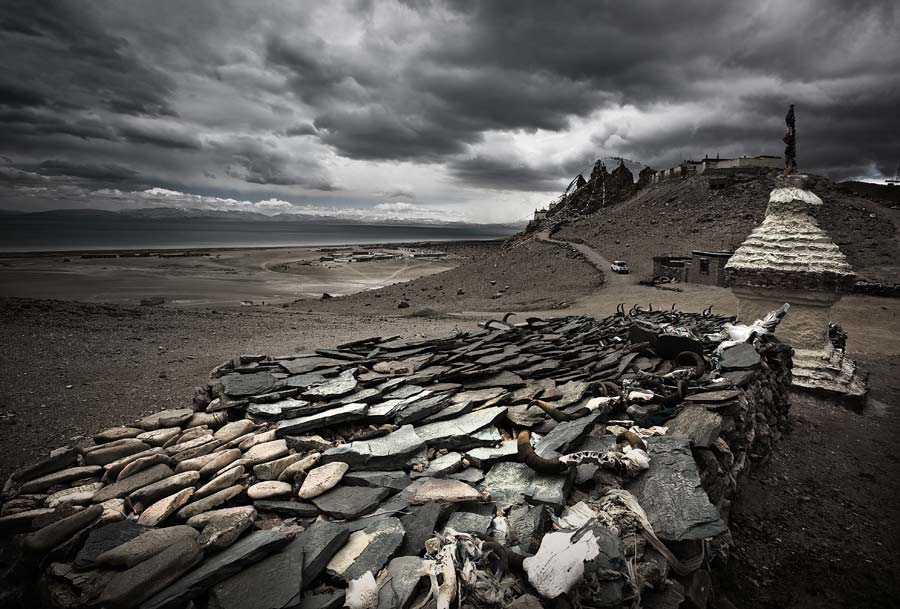 杜進---神圣。 作品拍攝于2011年5月,西藏瑪旁雍錯是圣地的“世界中心”,是人類心靈深處最美的圣湖,作者在牛頭骨環(huán)繞的天地中感受著,在這里,每一眼都是震撼,每一眼又都是美麗。