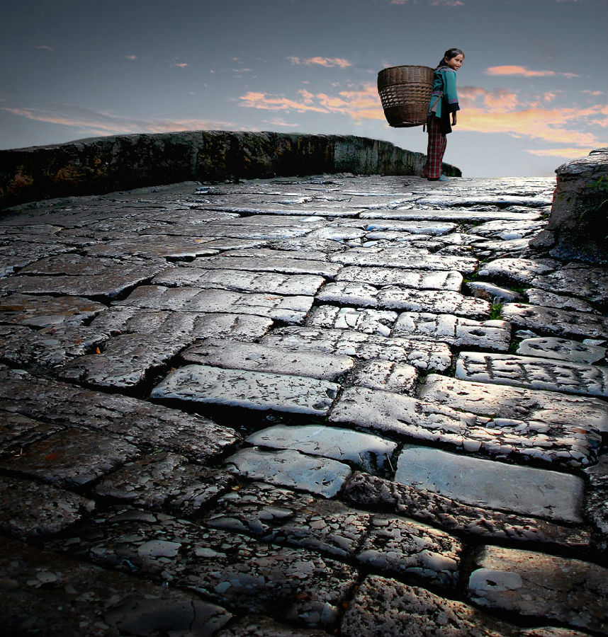 彭學平---老橋。作者拍攝于古都麗江,作品采用低角度的光影來表現(xiàn)老橋石板的質感,以表達古都麗江的歷史和滄桑。