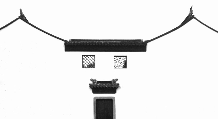 姜明燈---眉開眼笑。作者將生活中看似簡單的古民居線條和純凈自然的黑白色,勾勒出一張栩栩如生的笑臉,生動而富有張力。