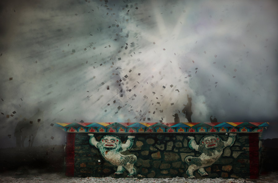 黃俊英---高原祭壇。作品拍攝于2011年甘肅省瑪曲縣阿萬倉鄉(xiāng),該鄉(xiāng)周圍的山頭上有許多祭壇,是藏民們祭祀時的神圣之地,祭壇上雕刻精美浮雕畫極具民族特色。