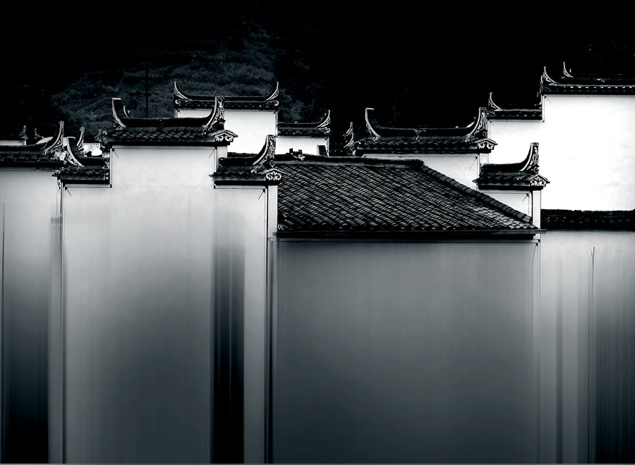 林學軍---徽韻。作品拍攝于2009年8月,拍攝于婺源縣古坦鄉(xiāng)的菊徑村,黛瓦、粉壁、馬頭墻的房屋,在側逆光的照射下非常有婺源徽派建筑特色,強化古建筑的韻味。