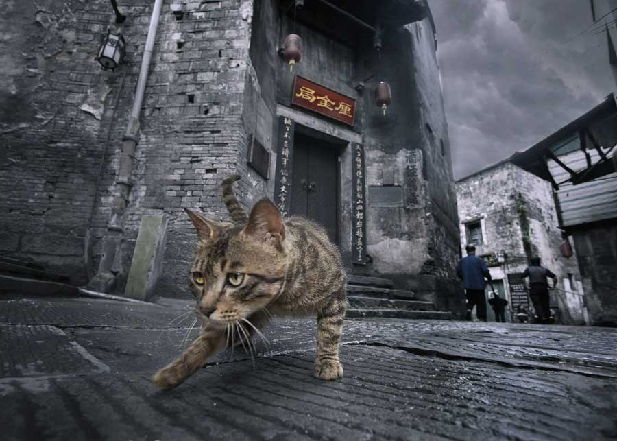 陳敏捷---古街精靈。古街上這只突如其來的家貓,帶著幾許神秘,帶著幾許詭異,有如精靈般地以恰當方式出現(xiàn)在畫面恰當?shù)奈恢蒙?仿佛能幫我們在這古街上完成一次時間的穿越。