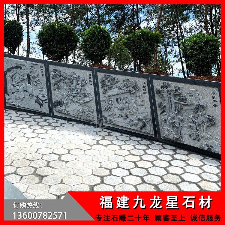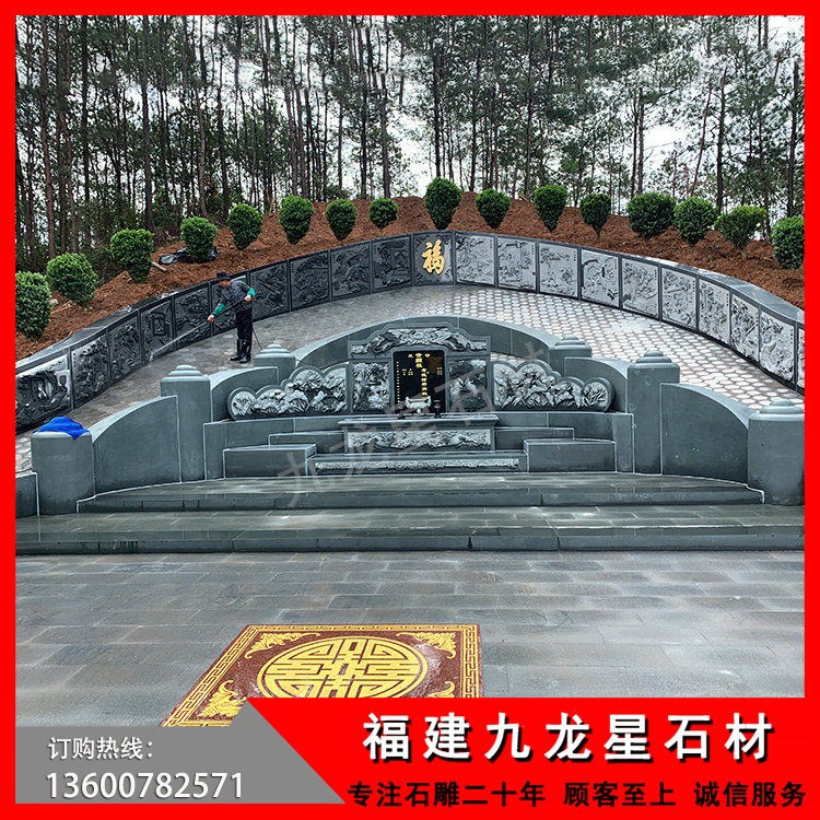 本公司做為此項目的承接方,從設計、雕刻、運輸、安裝施工一站式服務,包含了涼亭、二十四孝浮雕,墓碑等整個工程。本套墓圍采用的優(yōu)質(zhì)的G654+青石,整個工程耗時三個多月,靠著過硬的產(chǎn)品質(zhì)量、細致的服務如期完成整套項目,深得客戶好評。