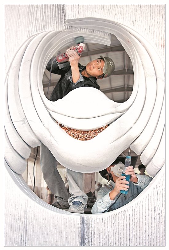 ——精湛技藝踏遍山河。在對惠安“世界石雕之都”的命名函中,世界手工藝理事會如是寫道:“惠安已成為國內(nèi)外產(chǎn)業(yè)規(guī)模最大、工藝水平最高、產(chǎn)品種類最齊全、加工能力最強的石雕石材工藝品生產(chǎn)加工與出口基地。”與之相映生輝的,是惠安雕藝工匠們踏遍祖國山河,將作品和技術(shù)傳揚至海內(nèi)外。此次攝影展中,就有不少攝影家們赴外地采風(fēng),用鏡頭將大江南北的惠安雕藝精品力作,仔細珍藏,拍下了《長沙青年毛澤東雕像》、《中央革命根據(jù)地歷史博物館大型浮雕(江西省瑞金市)》、《沙縣淘金山舍利塔》等佳作。而《傳統(tǒng)石雕龍柱》更攝下臺北龍山寺、福州定光寺、安溪文廟、晉江安海龍山寺、泉港峰尾東岳廟、泉港沙格靈慈宮等多個寺廟的龍柱,拼為組圖,集中展現(xiàn)惠安石匠們的精湛技藝。