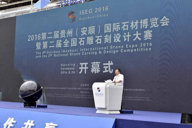 在26日舉行的開幕式上,十一屆全國(guó)政協(xié)副主席陳宗興出席開幕式并宣布開幕。貴州省委常委、副省長(zhǎng)慕德貴講話。全國(guó)工商聯(lián)原副主席、中國(guó)西部研究與發(fā)展促進(jìn)會(huì)理事長(zhǎng)程路,貴州省政協(xié)副主席班程農(nóng),國(guó)務(wù)院參事、國(guó)土資源部原總工程師張洪濤,中國(guó)科學(xué)院院士劉嘉麒,廣東省人大常委會(huì)原副主任王寧生,云南省政協(xié)原副主席陳勛儒,中國(guó)建筑材料聯(lián)合會(huì)副會(huì)長(zhǎng)、中國(guó)建筑材料工業(yè)規(guī)劃研究院院長(zhǎng)徐永模等出席了開幕式。安順市委書記周建琨致歡迎辭。工業(yè)和信息化部原材料工業(yè)司司長(zhǎng)周長(zhǎng)益,中國(guó)建筑材料聯(lián)合會(huì)副會(huì)長(zhǎng)、中國(guó)石材協(xié)會(huì)會(huì)長(zhǎng)陳國(guó)慶講話。省經(jīng)濟(jì)和信息化委員會(huì)主任馬寧宇主持開幕式。