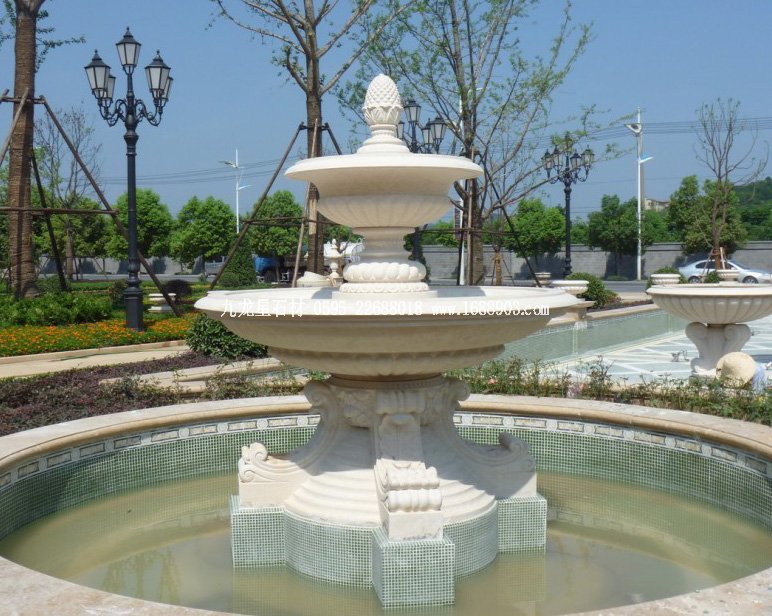 埃及米黃大理石水缽高約2.6米,雙層缽盤(pán)結(jié)構(gòu)。