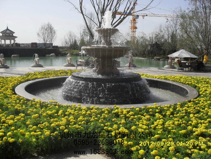 噴泉是園林中重要的組成部分。現(xiàn)代園林中,除了植物景觀外,噴泉也是重要的景觀,它既是一種水景藝術(shù),體現(xiàn)了動(dòng)、靜結(jié)合,形成明朗活潑的氣氛,給人以美的享受;同時(shí),噴泉還可以增加空氣中的負(fù)離子含量,起到凈化空氣、增加空氣濕度、降低環(huán)境溫度等作用,因此深受人們的喜愛。噴泉的種類很多,根據(jù)材質(zhì)分為以下幾種:石雕噴泉、玻璃鋼噴泉、陶瓷噴泉、人造石噴泉、鋼管結(jié)構(gòu)噴泉等。其中石雕噴泉具有結(jié)實(shí)耐用、藝術(shù)價(jià)值高、造型美觀等特點(diǎn)應(yīng)用最為廣泛。
