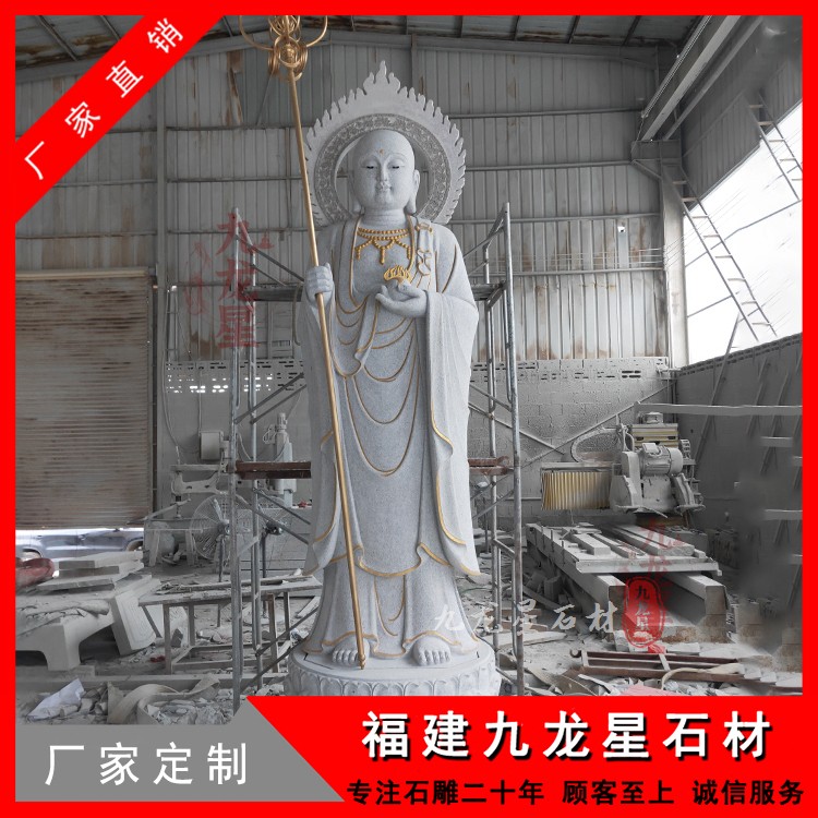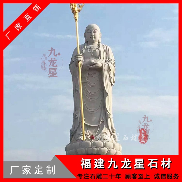 石雕地藏王的形象多為比丘相,身披袈裟的出家僧人之相,其左手持錫杖,右手持摩尼寶珠。佛像制作高度有2米、5米、6米8米等,不同尺寸皆可定制。九龍星制作的石雕地藏王,采用優(yōu)質(zhì)的石質(zhì)精雕細(xì)琢而成,歡迎來電咨 ...