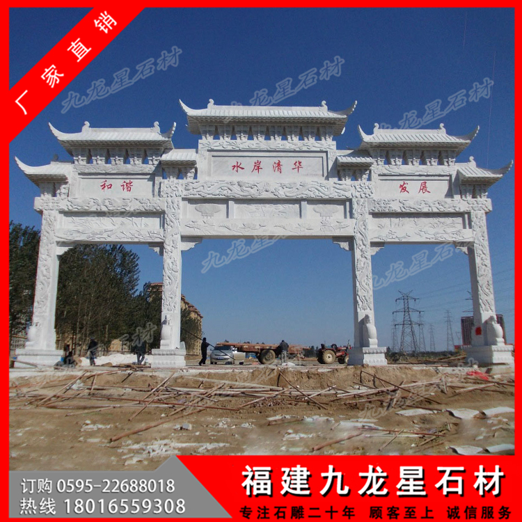 在我們的生活當(dāng)中,我們不僅僅可以在景區(qū)或者是城市中看到石雕牌坊的身影,在村莊也是可以看到石雕牌坊的,而村莊的石雕牌坊基本上都是花崗巖石雕牌坊。花崗巖石雕牌坊對于村莊的形象來說是具有很重要的意義的。