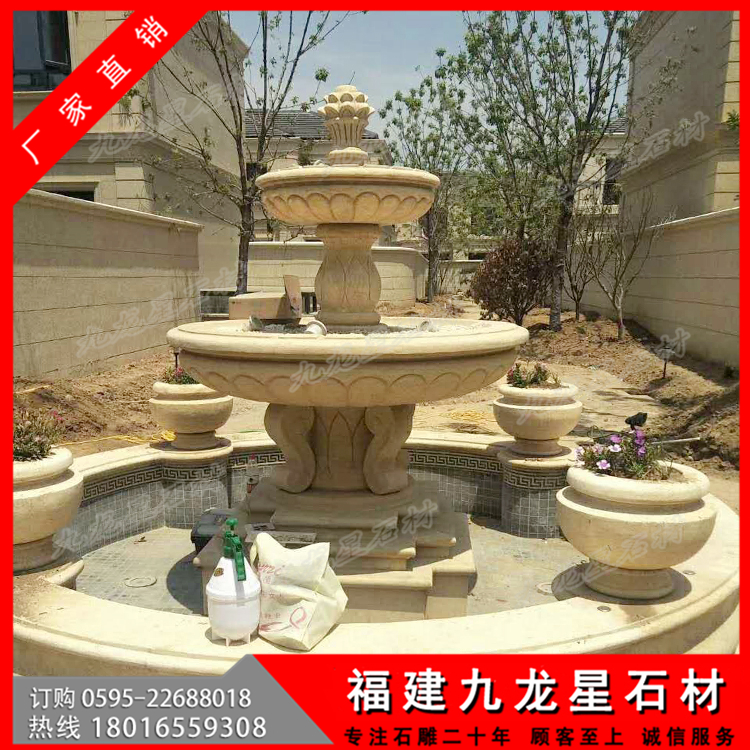 石雕流水噴泉是非常大型的石雕擺件,一般都適用于大型的廣場,大型的景區(qū),大型的別墅社區(qū)和高檔小區(qū)的景觀工程,所采用的材料大部分是黃銹石,芝麻白,蝦紅等耐用并且堅固的石材。
