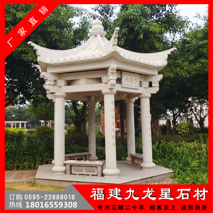 石雕涼亭,在我國(guó)也相當(dāng)普遍,現(xiàn)行早的涼亭,就是石亭。形態(tài)各異的石亭子,不僅裝點(diǎn)了我們的生活,還讓我們?cè)谛蓍e時(shí)有了好的去處。石雕涼亭子的魅力與人文內(nèi)涵是并存的,石雕涼亭子雖然只是一種陪體建筑,但卻起著重要的裝飾作用,因此形態(tài)各異、雅俗共賞的石雕亭子便成了景區(qū)或旅游區(qū)的裝飾。