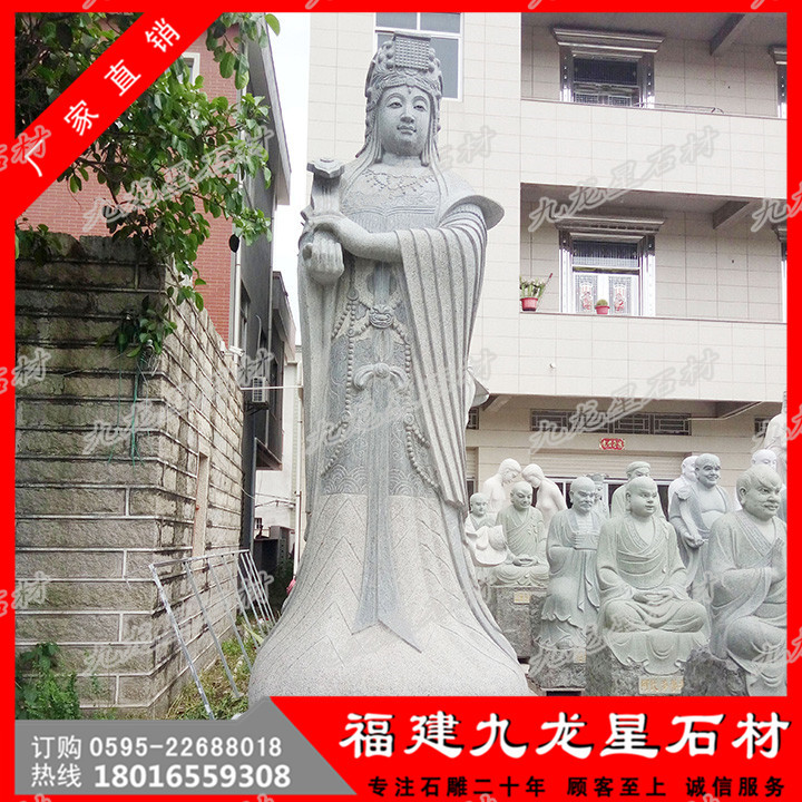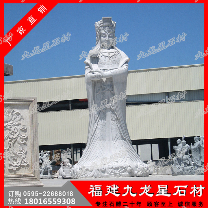 大型石雕媽祖中國民間在海上航行要先在船舶啟航前要先祭媽祖,祈求保佑順風(fēng)和安全,在船舶上立媽祖神位供奉。這就是“有海水處有華人,華人到處有媽祖”的真實(shí)寫照。而影響所及,媽祖由航海關(guān)系而演變?yōu)椤昂I瘛薄ⅰ白o(hù)航女神”等,因此形成了海洋文化史中最重要的中國民間信仰崇拜神之一。