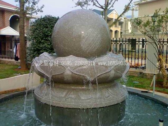 1、底盤(pán)(柱)裝水,用水泵抽水向上噴而沖動(dòng)上面的石球,使石球長(zhǎng)期轉(zhuǎn)動(dòng),象征著“財(cái)源滾滾”。